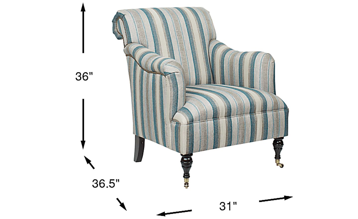 Cozy and chic, the Lincoln Heights accent chair's chic striped upholstery gives it a sophisticated style that will liven up your living space. Featuring roll arms lined in nailhead trim, and a welted seat cushion, this transitional chair beautifully balances traditional elements with modern updates. 100% woven poly chenille.
