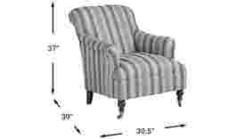 Cozy and chic, the Lincoln Heights accent chair's chic striped upholstery gives it a sophisticated style that will liven up your living space. Featuring pleated roll arms and a welted seat cushion, this transitional chair beautifully balances traditional elements with modern updates including turned front legs on casters. 100% Polyester