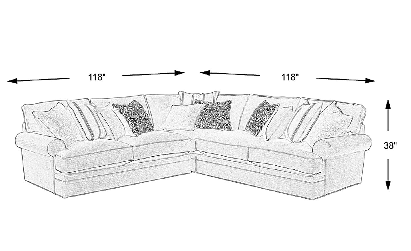 118"w"w x 118"d"d x 38"h"h