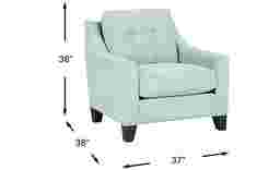 The Madison Place chair combines comfort with contemporary styling. It is covered in soft, durable Microfiber fabric in a fresh aqua color and features track arms, a tufted back, boxed seat cushion and wooden block feet. 100% Polyester