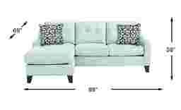 Contemporary and stylish, the Madison Place chaise sofa will transform your living room. Covered in fresh aqua colored Microfiber Plush, the chaise sofa features track arms and loose tufted pillowbacks. Elongated cushion and moveable base create a floating chaise, which can be used on either the right or the left. Two geometric accent pillows offer a designer touch. 100% Polyester