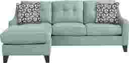 Contemporary and stylish, the Madison Place chaise sofa will transform your living room. Covered in soothing basil colored Microfiber Plush, the chaise sofa features track arms and loose tufted pillowbacks. Elongated cushion and moveable base create a floating chaise, which can be used on either the right or the left. A set of geometric accent pillows offers a designer touch. 100% Polyester.