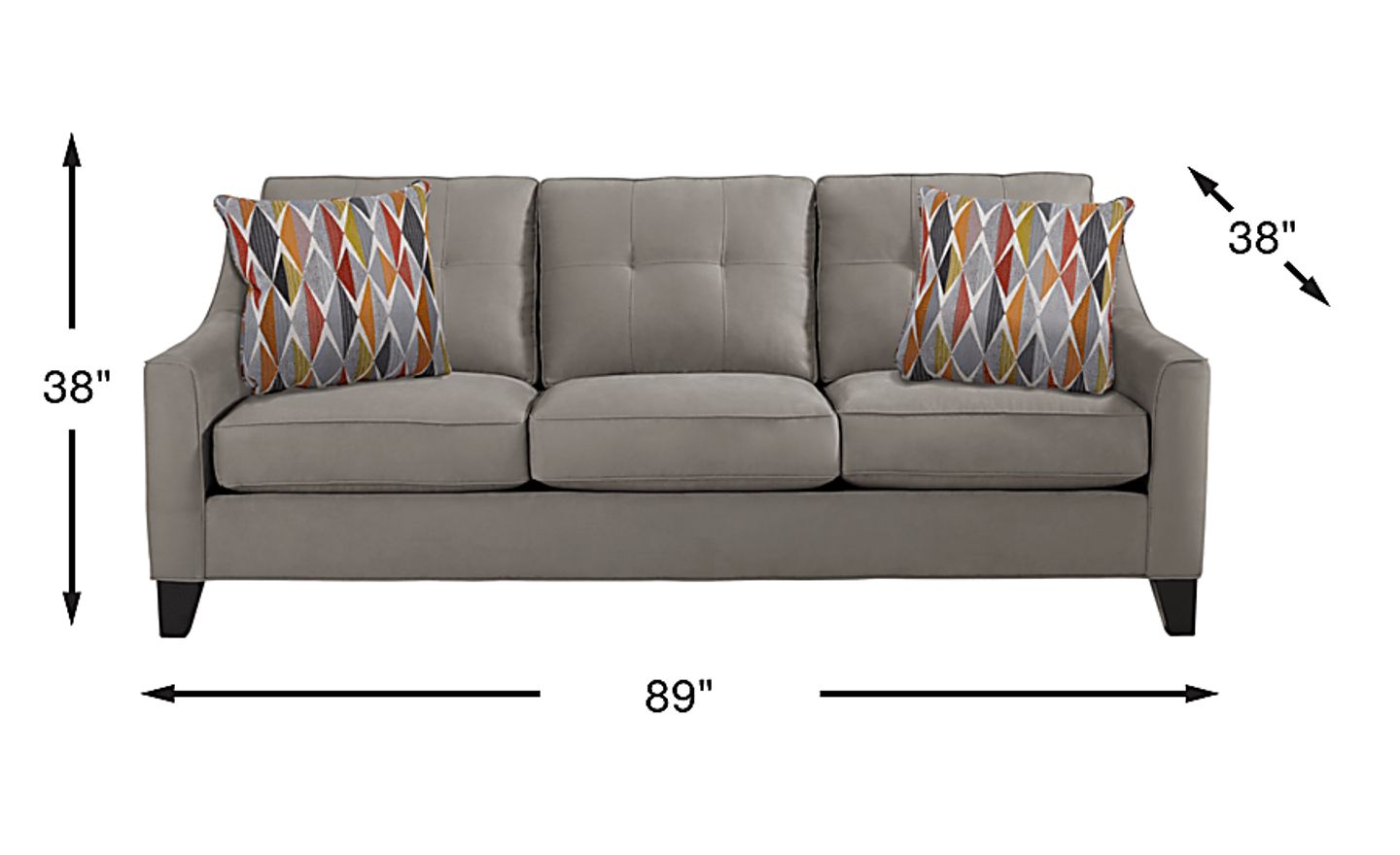 Contemporary and stylish, the Madison Place sleeper sofa will be a beautiful and practical addition to your living space. Upholstered in Microfiber Plush, in a steel gray color, the sofa features a queen size sleeper with track arms and loose tufted pillowbacks. Tucked away and easily pulled out for overnight guests, the sleeper boasts an exceptional Gel Memory Foam queen size mattress. The mattress features premium gel memory foam technology, providing superior body contouring support and a cool, comfortable sleep environment. Two decorative accent pillows offer a designer touch. Upholstery: 100% Polyester.