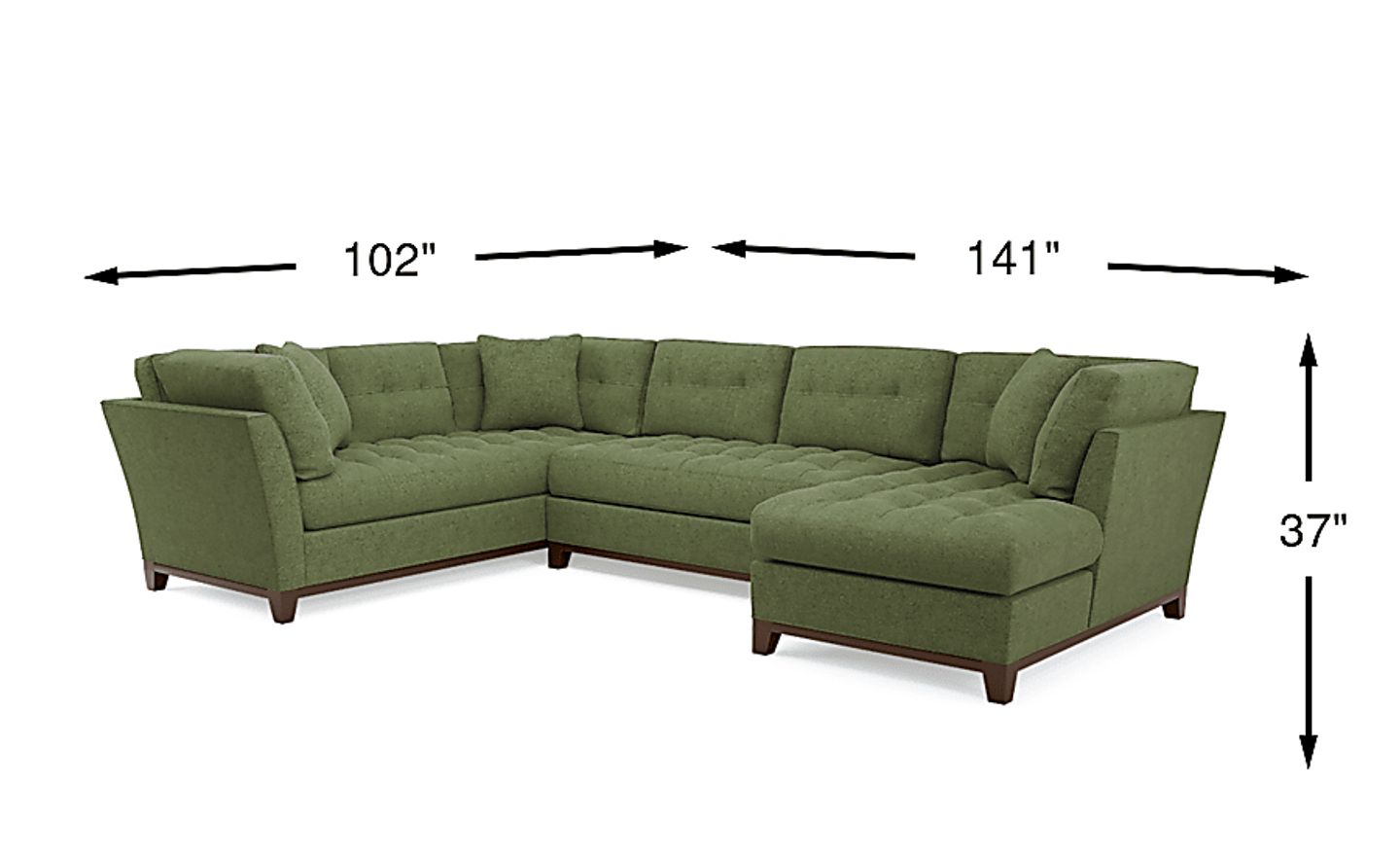 Bring versatile, stylish seating into your living room with the Metropolis Way sectional. Give the room a contemporary spin and separate the sectional's sofa from the chaise and armless loveseat for fresh seating options. Each piece is quality constructed on a hardwood frame for lasting wear and covered with textured fabric in avocado green. Refined button tufting and a dark brown finished wood base complete each piece. Upholstery: 100% Polypropylene.