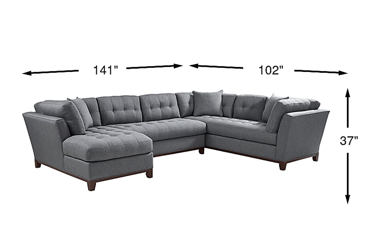 Bring versatile, stylish seating into your living room with the Metropolis Way sectional. Give the room a contemporary spin and separate the sectional's sofa from the chaise and armless loveseat for fresh seating options. Each piece is quality constructed on a hardwood frame for longevity and upholstered in textured fabric in a granite color. Refined button tufting and a dark brown finished wood base complete each piece. Upholstery: 100% Polyester.