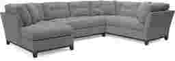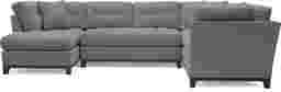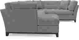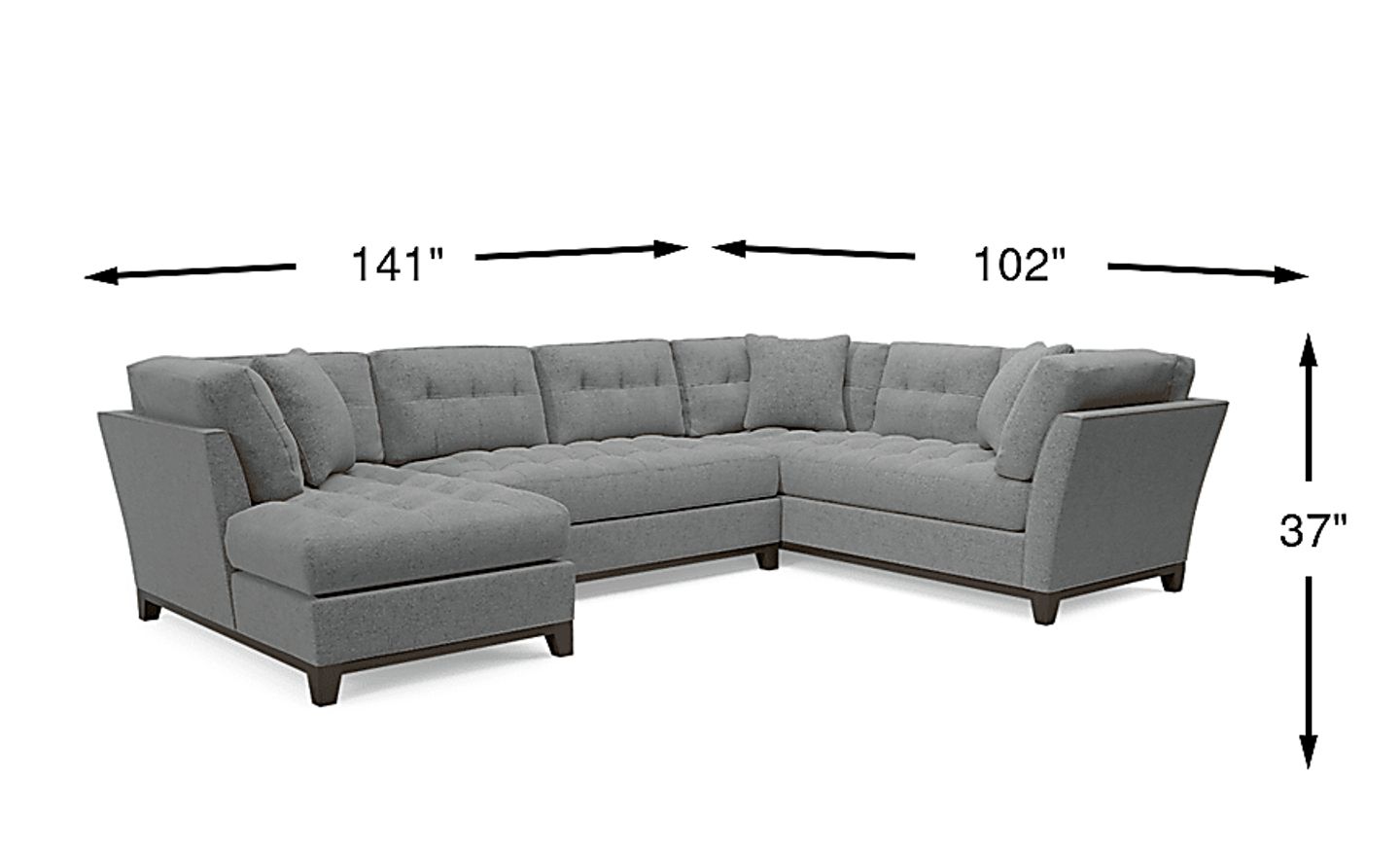 Bring versatile, stylish seating into your living room with the Metropolis Way sectional. Give the room a contemporary spin and separate the sectional's sofa from the chaise and armless loveseat for fresh seating options. Each piece is quality constructed on a hardwood frame for lasting wear and covered with textured fabric in a granite color. Refined button tufting and a dark brown finished wood base complete each piece. Upholstery: 100% Polyester