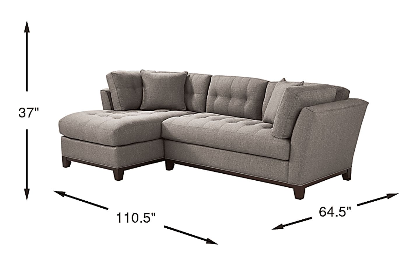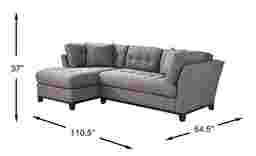 Bring versatile, stylish seating into your living room with the Metropolis Way sectional. Give the room a contemporary spin and separate the sectional's sofa from the loveseat for fresh seating options. Each piece is quality constructed on a hardwood frame for lasting wear and covered with textured fabric in a neutral gray color. Refined button tufting and a dark brown finished wood base complete each piece. Upholstery: 100% Polypropylene. Accent pillows sold separately.