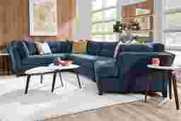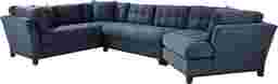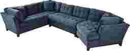Bring versatile, stylish seating into your living room with the Metropolis Way sectional. Give the room a contemporary spin and separate the sectional's sofa from the cuddler and armless loveseat for fresh seating options. Each piece is quality constructed on a hardwood frame for lasting wear and covered with textured fabric in an ink blue color. Refined button tufting and a dark brown finished wood base complete each piece. Upholstery: 100% Polypropylene.
