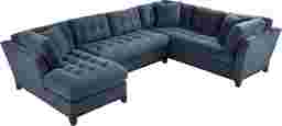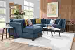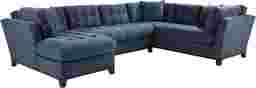 Bring versatile, stylish seating into your living room with the Metropolis Way sectional. Give the room a contemporary spin and separate the sectional's sofa from the chaise and armless loveseat for fresh seating options. Each piece is quality constructed on a hardwood frame for lasting wear and covered with textured fabric in an ink blue color. Refined button tufting and a dark brown finished wood base complete each piece. Upholstery: 100% Polypropylene.