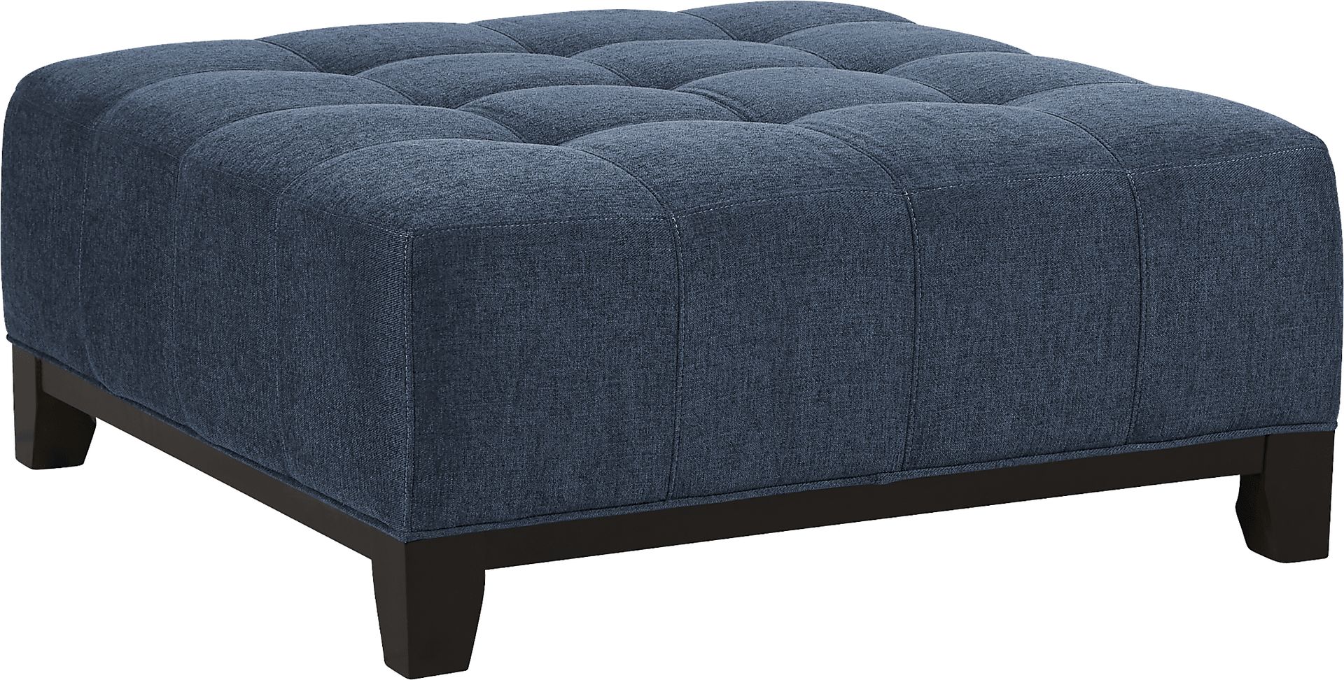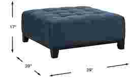 Compact versatility and chic style combine with the Metropolis Way cocktail ottoman from the Cindy Crawford Home collection. It's upholstered in ink blue woven textured fabric and features subtle tufting for a sophisticated piece that can be used as a cocktail table, footrest or an extra seat in your living space Upholstery: 100% Polypropylene.