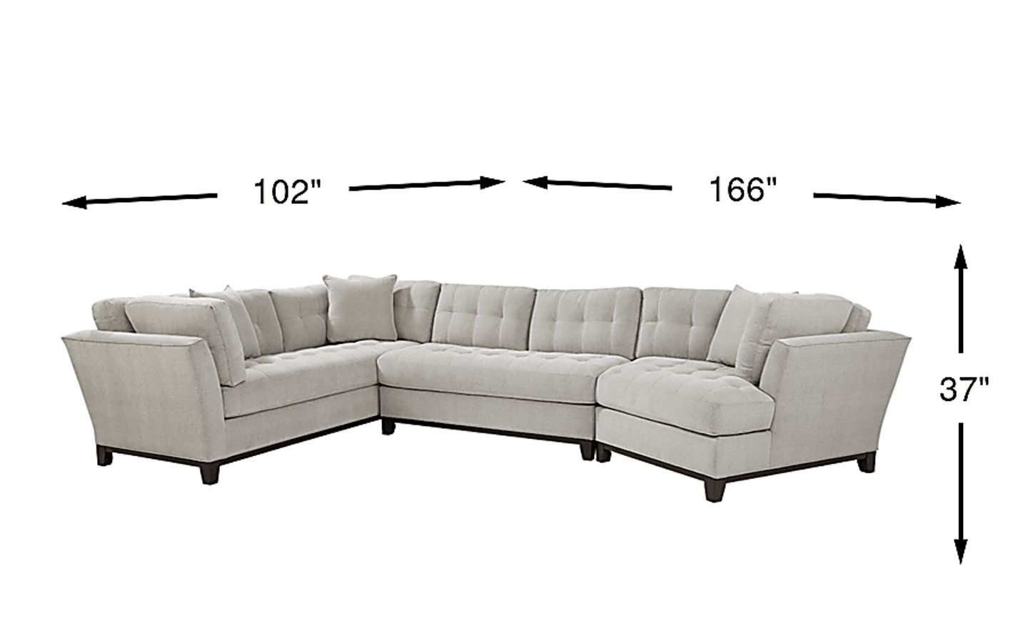 Bring versatile, stylish seating into your living room with the Metropolis Way sectional. Give the room a contemporary spin and separate the sectional's sofa from the cuddler and armless loveseat for fresh seating options. Each piece is quality constructed on a hardwood frame for lasting wear, and covered with textured fabric in a neutral platinum color. Refined button tufting and a dark brown finished wood base complete each piece. 100% Polypropylene