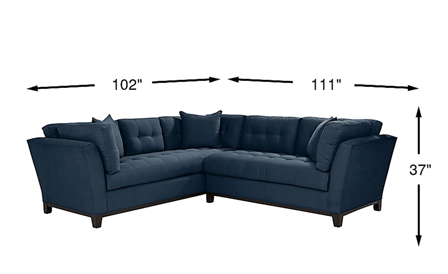 Bring versatile, stylish seating into your living room with the Metropolis Way sectional. Give the room a contemporary spin and separate the sectional's sofa from the chaise and loveseat for fresh seating options. Each piece is quality constructed on a hardwood frame for lasting wear, and covered with velvety soft, easy care, Microfiber fabric in an attractive sapphire color. Refined button tufting and a dark brown finished wood base complete each piece. 100% Polyester