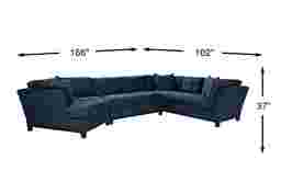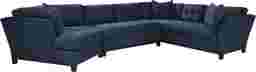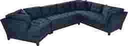 Bring versatile, stylish seating into your living room with the Metropolis Way sectional. Give the room a contemporary spin and separate the sectional's sofa from the cuddler and armless loveseat for fresh seating options. Each piece is quality constructed on a hardwood frame for lasting wear, and covered with velvety soft, easy care, Microfiber fabric in an attractive sapphire color. Refined button tufting and a dark brown finished wood base complete each piece. 100% Polyester