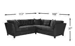 Bring versatile, stylish seating into your living room with the Metropolis Way sectional. Give the room a contemporary spin and separate the sectional's sofa from the chaise and loveseat for fresh seating options. Each piece is quality constructed on a hardwood frame for lasting wear, and covered with soft, easy care, Microfiber fabric in an attractive slate color. Refined button tufting and a dark brown finished wood base complete each piece. 100% Polyester