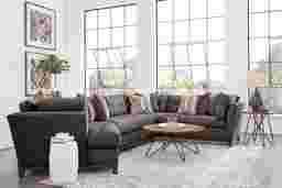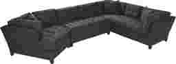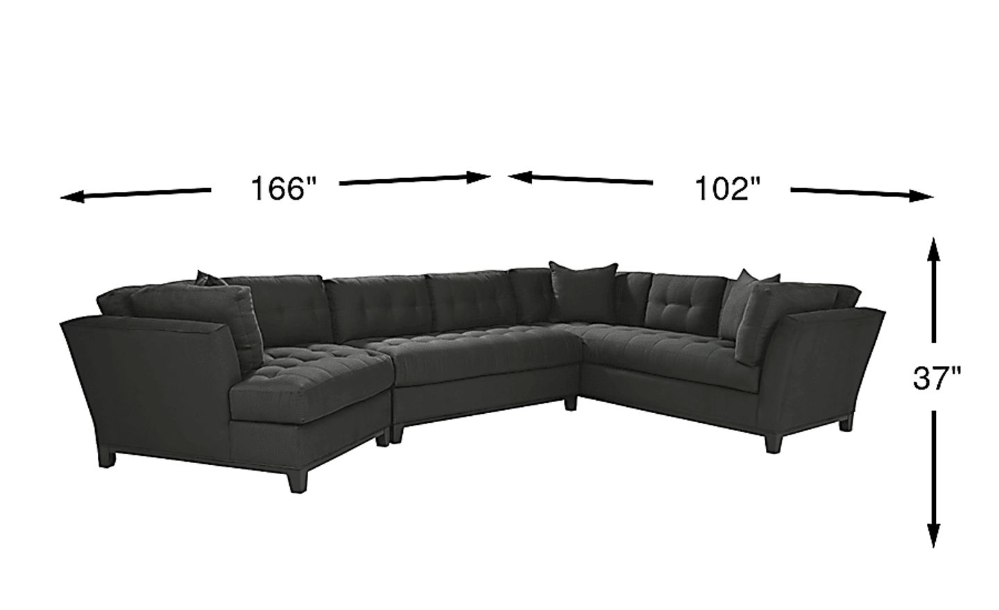 Bring versatile, stylish seating into your living room with the Metropolis Way sectional. Give the room a contemporary spin and separate the sectional's sofa from the cuddler and armless loveseat for fresh seating options. Each piece is quality constructed on a hardwood frame for lasting wear, and covered with soft, easy care, Microfiber fabric in an attractive slate color. Refined button tufting and a dark brown finished wood base complete each piece. 100% Polyester