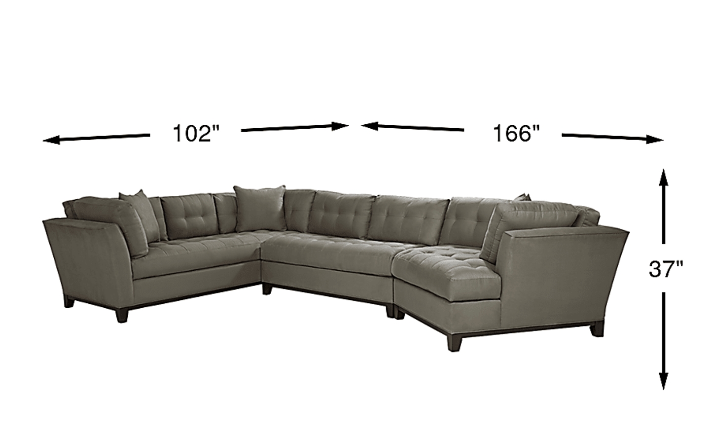 Bring versatile, stylish seating into your living room with the Metropolis Way sectional. Give the room a contemporary spin and separate the sectional's sofa from the cuddler and armless loveseat for fresh seating options. Each piece is quality constructed on a hardwood frame for lasting wear, and covered with soft, easy care, Microfiber fabric in a neutral steel color. Refined button tufting and a dark brown finished wood base complete each piece. 100% Polyester