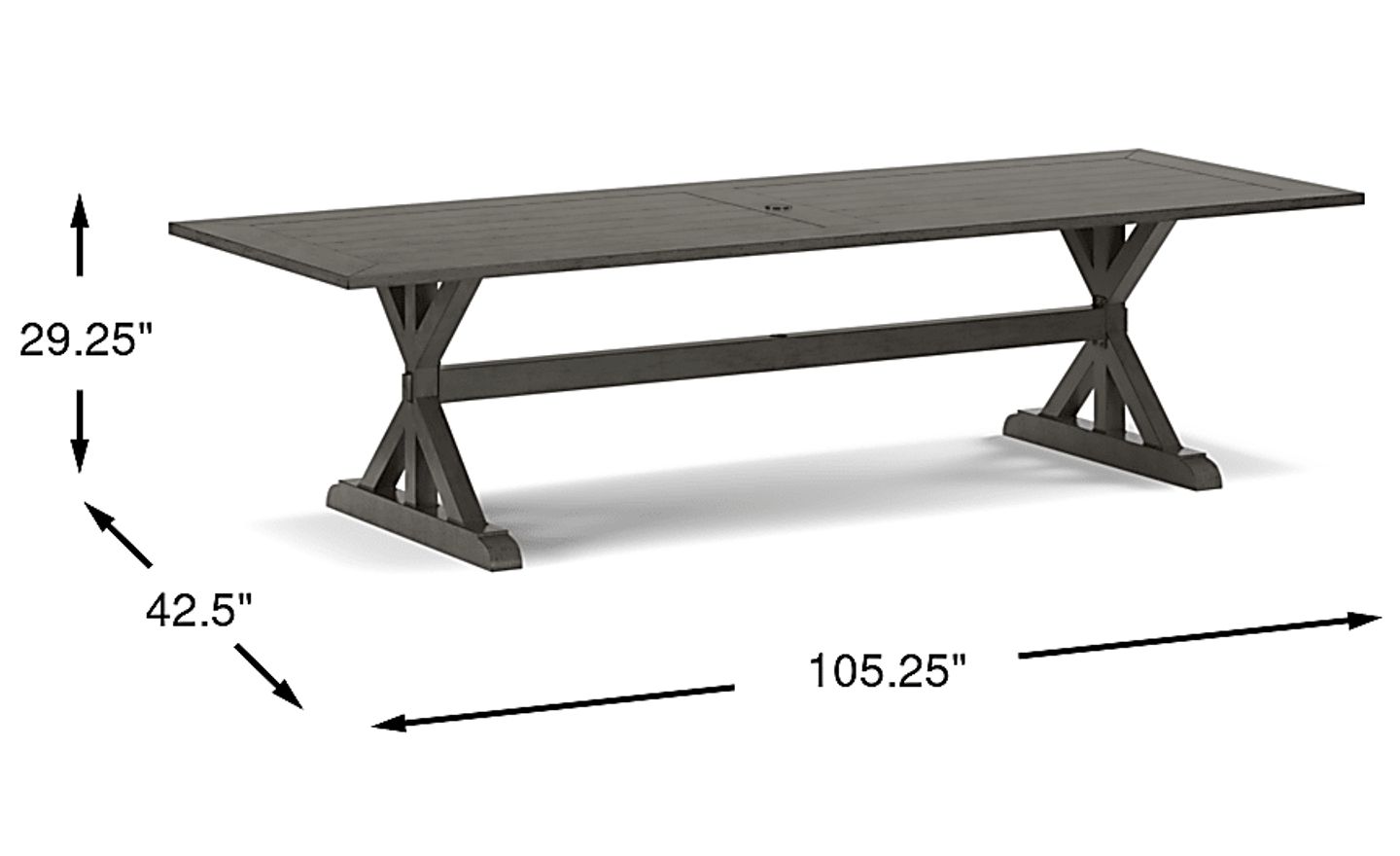 There's plenty of elbow room to entertain outside with the Montecello dining table. This trestle table has a 105 x 42 inch plank style top made with sturdy, rust-resistant aluminum
