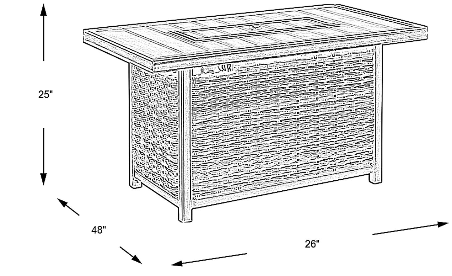 Bring chic and sophisticated style to your patio with the coziness of the Montecello fire pit from the Cindy Crawford Home collection. Featuring a gray wicker exterior and a wood panel inspired top, this piece is perfect for adding a dose of ambience to any outdoor area. The fire height and heat are adjustable, ideal for accommodating groups of any size. It uses a push button igniter and a standard propane tank (not included) with 40,000 BTU. The fire pit comes complete with a lid, fire glass and is also compatible with lava rocks (not included).