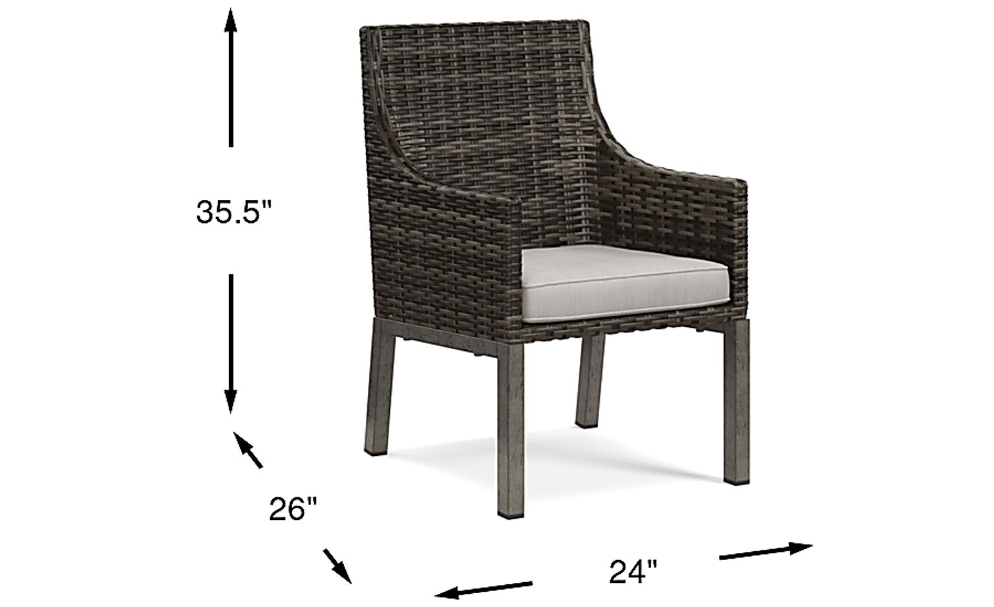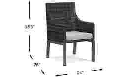 Featuring coastal contemporary style, the Montecello arm chair offers a stylish solution for outdoor seating. All-weather handwoven wicker over a fully-welded rustproof aluminum frame is rendered in driftwood-inspired shades of gray, tan and brown. The Sunbrella fabric covered cushion, in a silver color, is mold, mildew and fade resistant. 100% Sunbrella fabric. To clean Sunbrella fabric cushions remove dirt and spray on cleaning solution (water and mild soap), then use a soft bristle brush or sponge. Allow cleaning solution to soak into fabric and rinse thoroughly until soap residue is removed. Air dry. Do not dry clean.