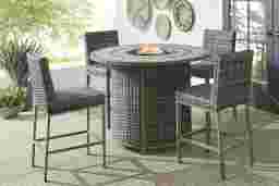 Chic patio furniture is hard to come by. That's what makes the Montecello fire bar table from the Cindy Crawford Home collection essential in adding a level of sophistication to your outdoor living area. Sitting at bar height, this table features a gray wicker exterior base, a stone-inspired panel top and is designed to ignite great conversation when paired with the Montecello bar stools. Complete with adjustable fire height and heat elements, the table utilizes a push button igniter and a standard propane tank (not included) with 50,000 BTU. One lid and fire glass are also included.