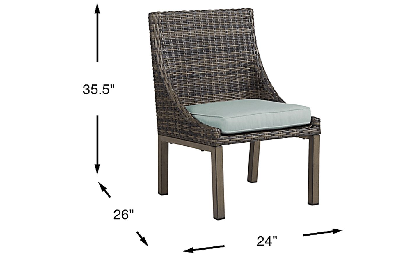 Boasting coastal contemporary style, the Montecello side chair offers a stylish solution for outdoor seating. All-weather handwoven wicker over a fully-welded rustproof aluminum frame is rendered in driftwood-inspired shades of gray, tan and brown. The Sunbrella fabric covered cushion, in a mist color, is mold, mildew and fade resistant. 100% Sunbrella fabric. To clean Sunbrella fabric cushions remove dirt and spray on cleaning solution (water and mild soap), then use a soft bristle brush or sponge. Allow cleaning solution to soak into fabric and rinse thoroughly until soap residue is removed. Air dry. Do not dry clean.