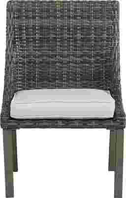 Boasting coastal contemporary style, the Montecello side chair offers a stylish solution for outdoor seating. All-weather handwoven wicker over a fully-welded rustproof aluminum frame is rendered in driftwood-inspired shades of gray, tan and brown. The durable fabric covered cushion, in a mist color, is mold, mildew and fade resistant.