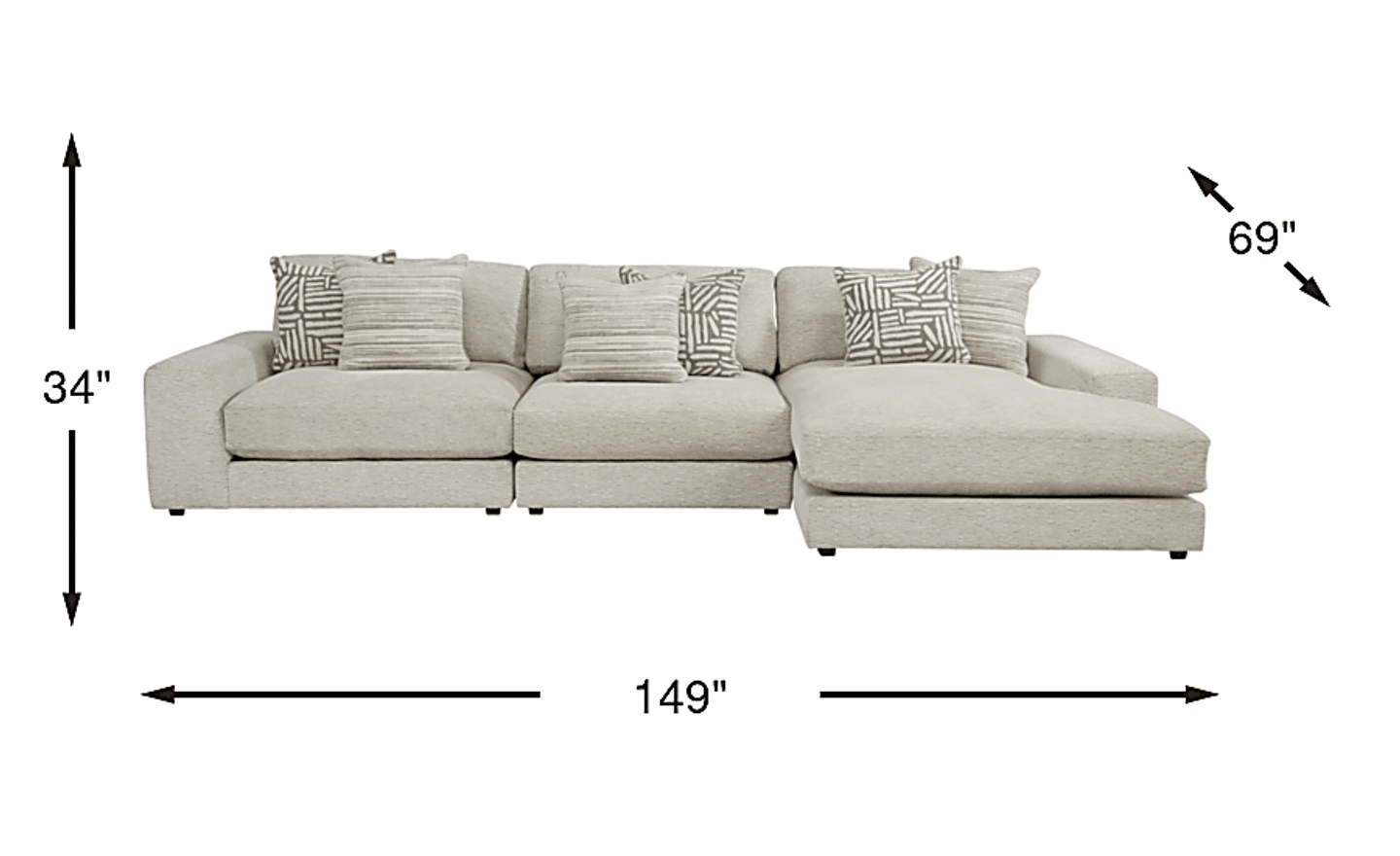Boasting luxe details like soft off-white chenille upholstery and deep seating, the Monterey Park sectional from the Cindy Crawford Home collection creates an ideal balance between cozy comfort and chic style. The seat and back cushions are reversible for added longevity and feature a decadent Feather Blend design that conforms comfortably to the body. With room for two people to sit and one to stretch out, the sectional offers sleek track arms for an appealingly streamlined silhouette, while a set of accent pillows in a variety of patterns adds visual texture. Upholstery: 100% Polyester.