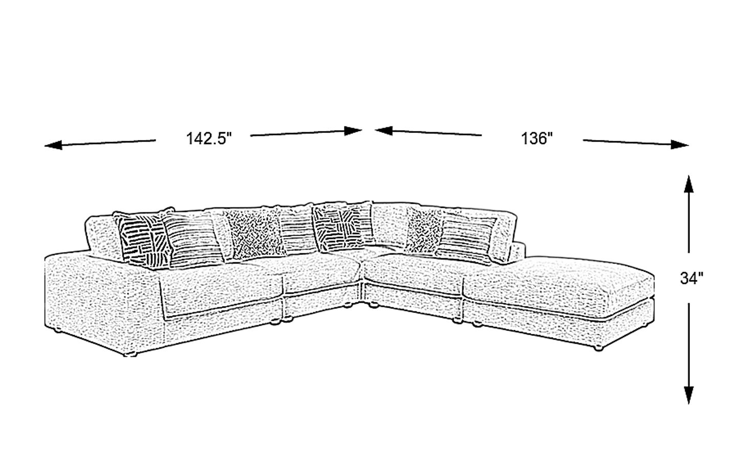 Boasting luxe details like soft off-white chenille upholstery and deep seating, the Monterey Park sectional from the Cindy Crawford Home collection creates an ideal balance between cozy comfort and chic style. The seat and back cushions are reversible for added longevity and feature a decadent Feather Blend design that conforms comfortably to the body. With room for up to five people, the sectional offers sleek track arms for an appealingly streamlined silhouette, while a set of accent pillows in a variety of patterns adds visual texture. Upholstery: 100% Polyester.