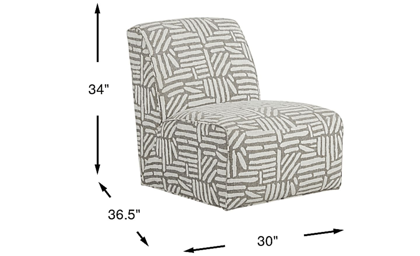 Offering plush comfort, transitional style and soft woven chenille upholstery with a funky geometric print, the Monterey Park accent chair from the Cindy Crawford Home collection is the perfect finishing piece to your room ensemble. Its armless design offers a chic touch. Upholstery: 55% Polypropylene, 36% Acrylic, 9% Polyester