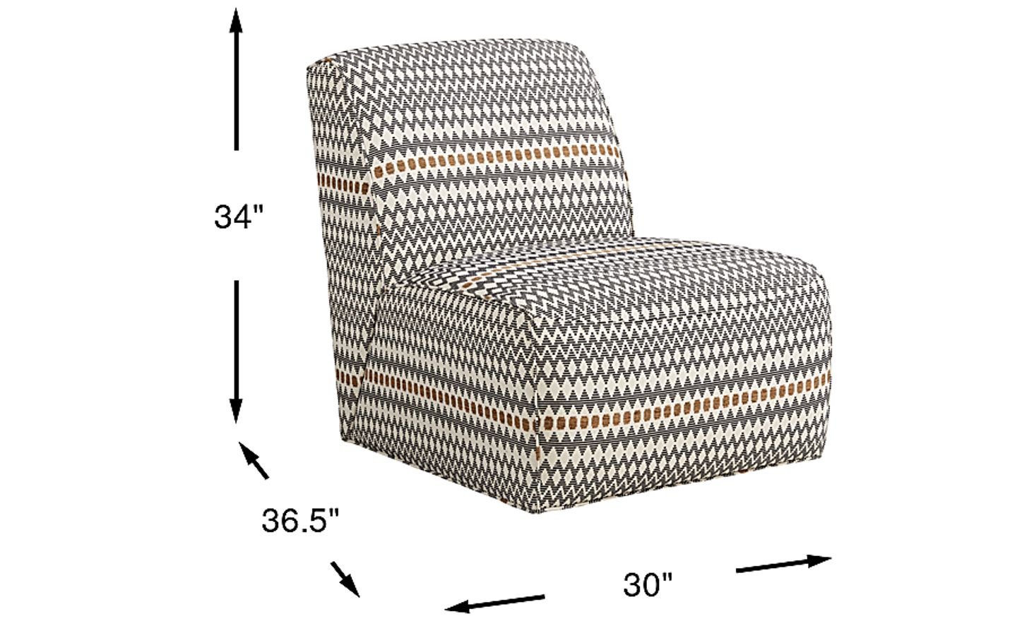 Complete your living room with the Nichols Park accent chair from the Cindy Crawford Home collection. Patterned in a two-tone onyx and beige motif this striking accent piece is woven for style and comfort. Geometric shapes add a chic flair to its transitional style offering eye-catching appeal. This chair is stunning alongside the Cindy Crawford Home Nichols Park sectional. Upholstery: 79% Cotton, 21% Polyester.