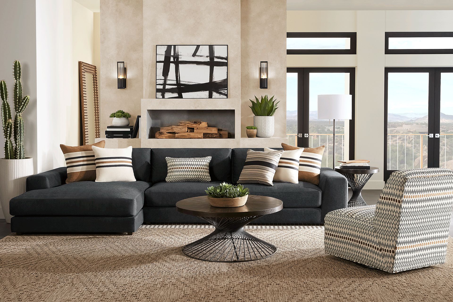 Boasting luxe details like soft onyx chenille upholstery and deep seating, the Nichols Park sectional from the Cindy Crawford Home collection creates an ideal balance between cozy comfort and chic style. The seat and back cushions are reversible for added longevity and feature a decadent Feather Blend design that conforms comfortably to the body. With room for up to five people, the sectional offers sleek track arms for an appealingly streamlined silhouette, while a set of accent pillows in a variety of patterns adds visual texture. Upholstery: 100% Polyester