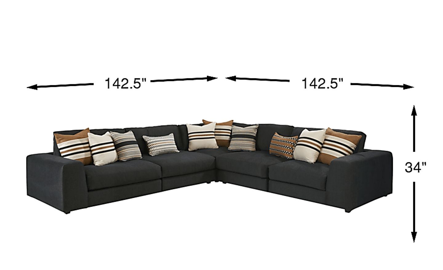 Boasting luxe details like soft onyx chenille upholstery and deep seating, the Nichols Park sectional from the Cindy Crawford Home collection creates an ideal balance between cozy comfort and chic style. The seat and back cushions are reversible for added longevity and feature a decadent Feather Blend design that conforms comfortably to the body. With room for up to five people, the sectional offers sleek track arms for an appealingly streamlined silhouette, while a set of accent pillows in a variety of patterns adds visual texture. Upholstery: 100% Polyester.