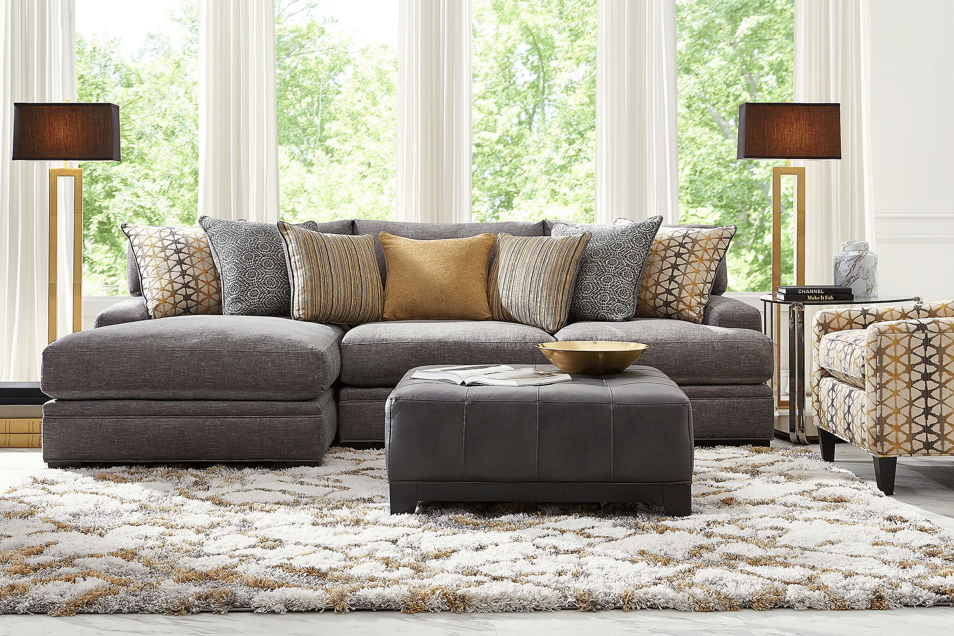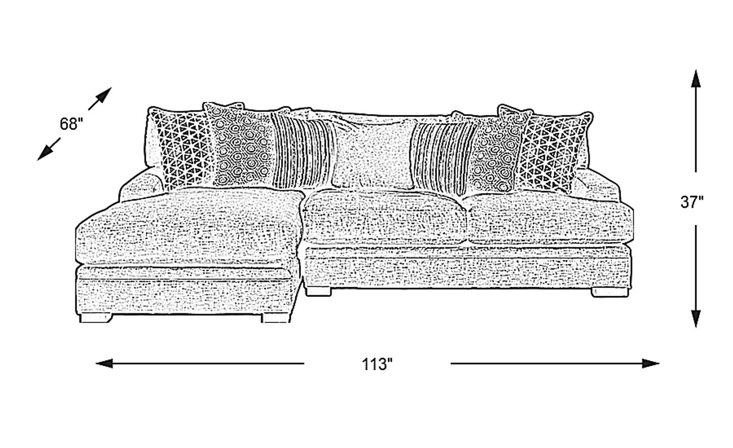 Relaxed contemporary styling and luxurious seating make the Palm Springs chaise sectional an exceptional choice. Its deep comfort with unbelievable softness is achieved with Feather Blend cushions that provide a sumptuous, enveloping feel. Each seat cushion and correlating accent pillow is filled with a blend of feathers, down and conjugated polyester fiber. Natural elements offer spring-like support and resiliency with form and softness. Plush woven upholstery has a lavish feel and on-trend silver color. Soft to the touch, this fabric is also durable enough for a busy family room. 100% Polyester
