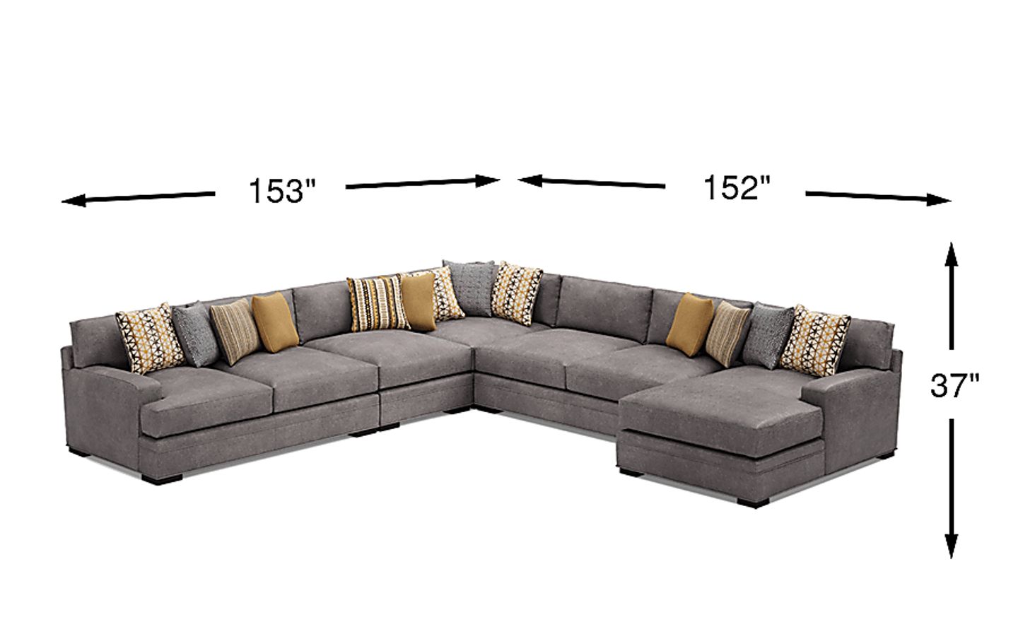 With dimensions of approximately 152"w x 153"d, this sectional is a grand-scale piece specifically designed for expansive, open-concept living areas or large family rooms. While the 4-piece modular design makes it easier to navigate into a home than a single oversized piece, we recommend this model for rooms with significant square footage where it can serve as a primary focal point without obstructing walkways.