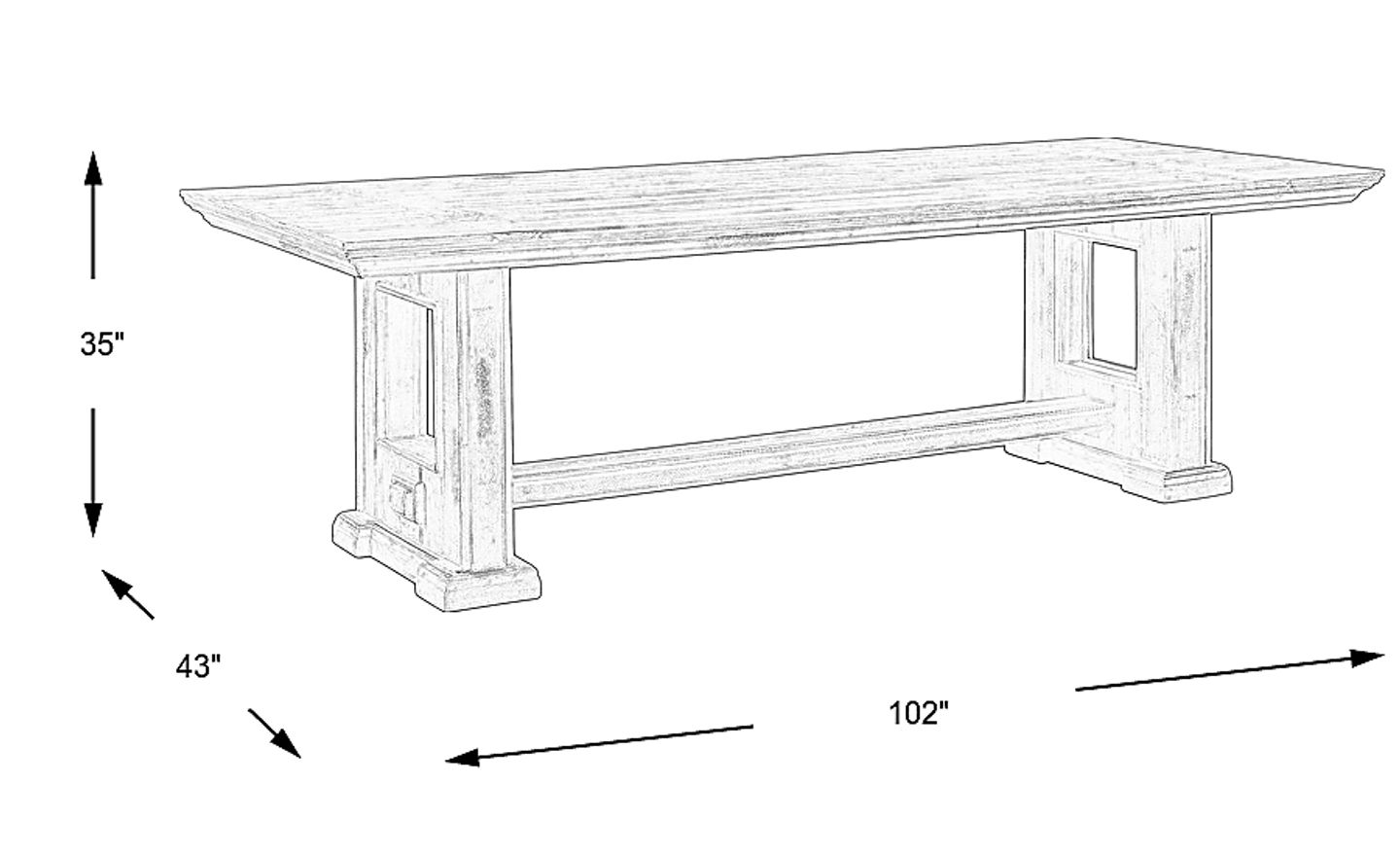 An expansive, inviting home base for meals big and small, the Pine Manor dining table offers plenty of room for family and friends alike. Crafted of solid Brazilian pine in a washed brown finish, this traditional trestle table features an ample 102-inch tabletop.