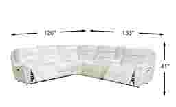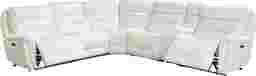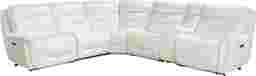 Stately grace accompanies modern comfort and style with the luxurious Regis Park sectional from the Cindy Crawford Home collection. Upholstered in rich top grain white leather where the body touches with padded outside arms, a tall back and inset piping, this grand sectional's sophisticated flare is matched only by the luxury of its featured amenities. Dual power head and footrests recline with the press of a button while built-in USB ports provide seamless accessibility for charging your favorite devices. You can even keep a beverage handy with removable, full-size stainless-steel cup holders. Upholstery: Top grain leather where the body touches. Vinyl back and sides.