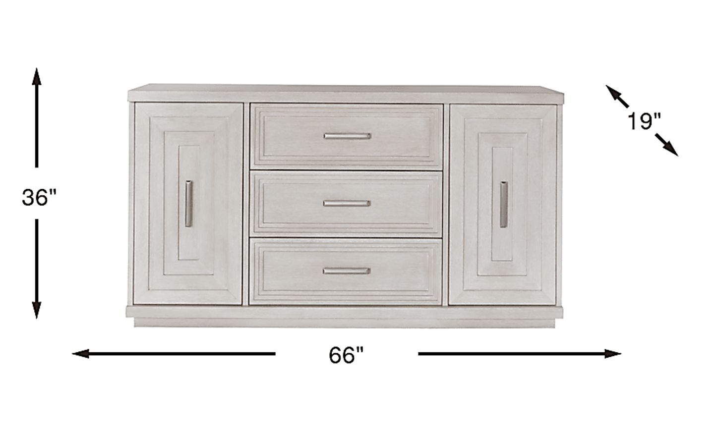 This buffet is an excellent solution for more compact spaces. The light ivory finish reflects natural light, which helps an urban apartment or smaller dining room feel more open and airy. Despite its slim 19-inch depth, it maximizes vertical storage through its three-drawer and two-door configuration, offering a high storage-to-footprint ratio.