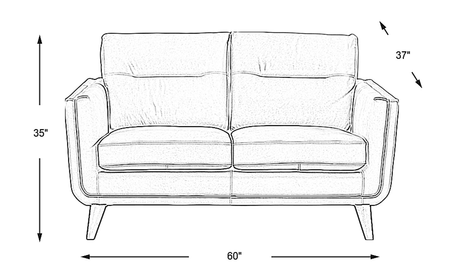 Seating for two makes a sophisticated statement with the stone colored San Salerno loveseat. Curves on the base and mid-century inspired angled legs add eye appeal while the luxurious top grain leather is soft and supple to the touch. Tuxedo arms flank two attached bustle back cushions and two attached seat cushions. Upholstery: Top grain leather where the body touches and polyurethane fabric sides and backs.