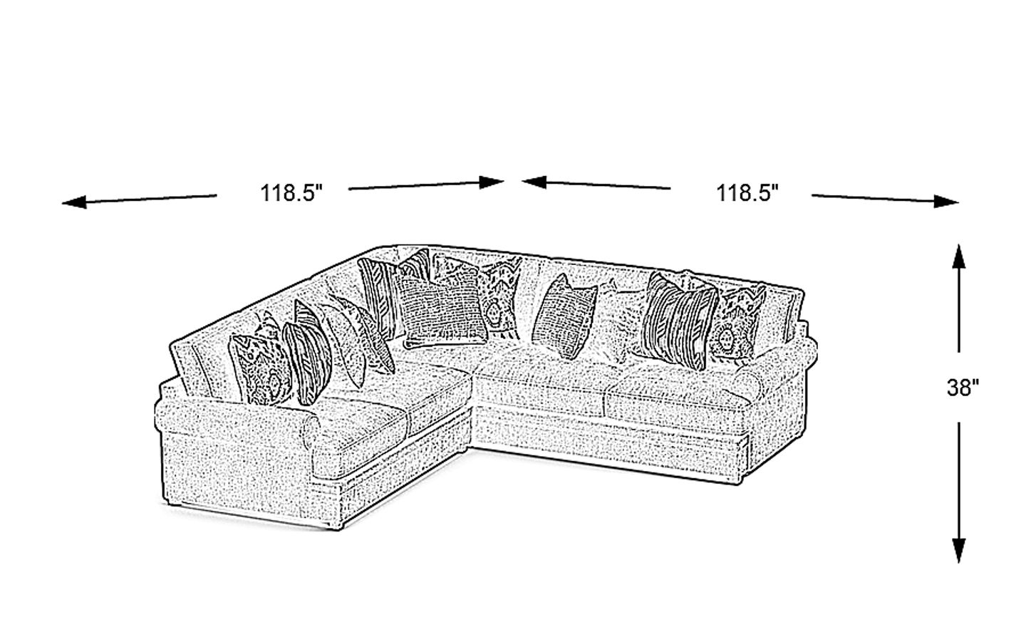 118.5"w"w x 118.5"d"d x 38"h"h