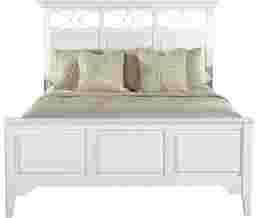 You'll feel as if you've come home to your own vacation resort when you add the Seaside bed to your home. It has an open lattice design on the headboard and raised panel details. The fresh shell white finish is rubbed through and distressed for added interest. Mattress and foundation (if required) sold separately. Bed shown is queen size.