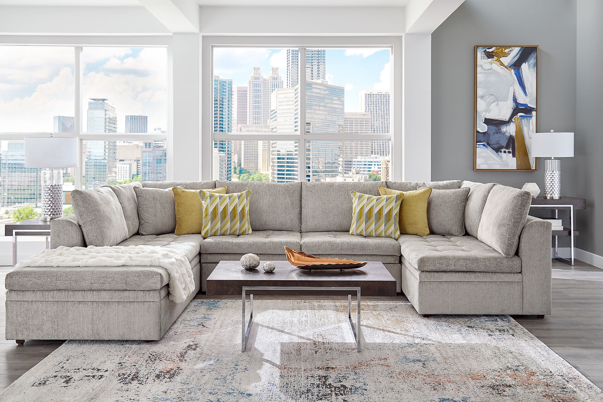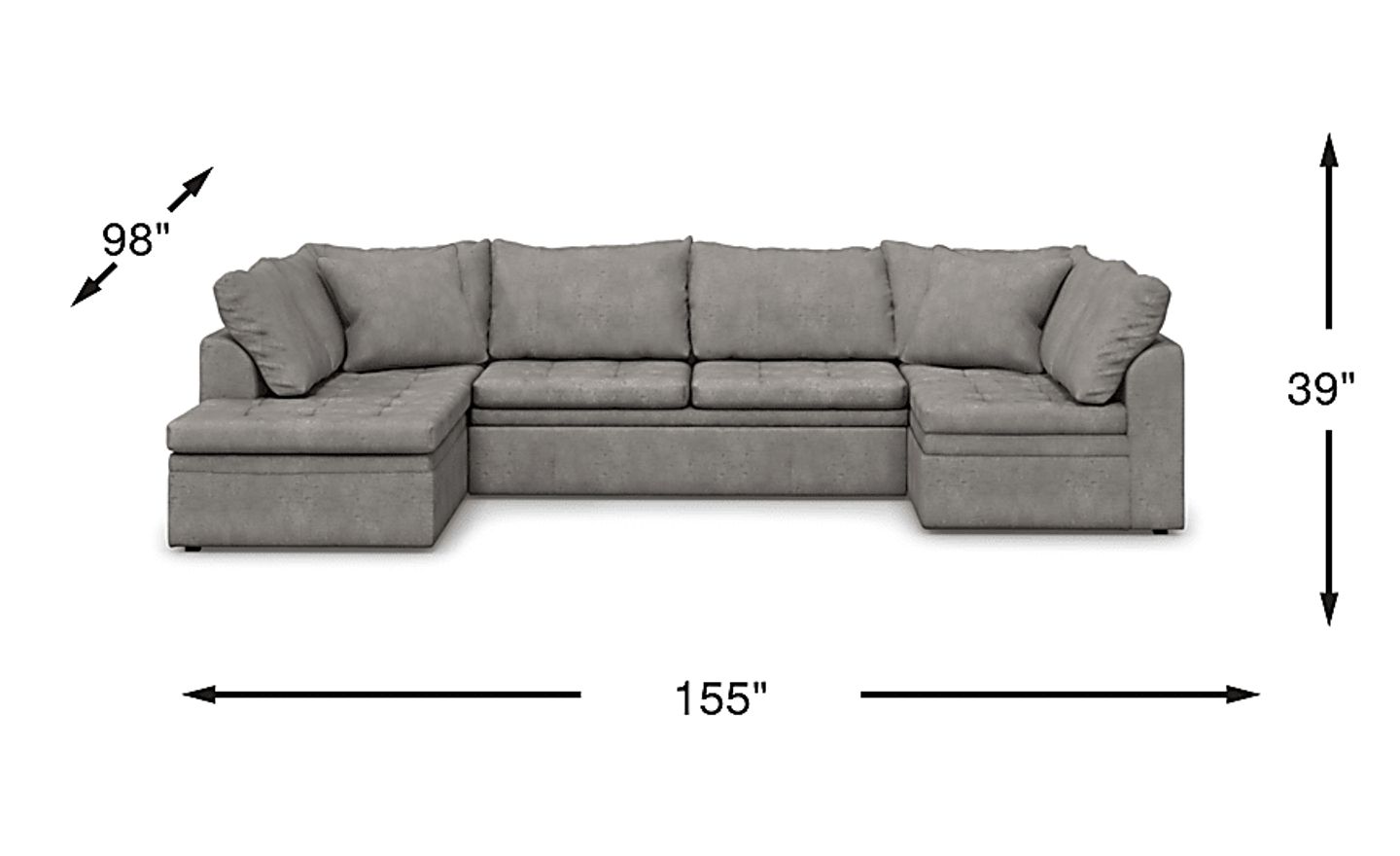 Relax in your living room with the contemporary style of the Sheridan Square sectional from Cindy Crawford Home. This stunning sectional is upholstered in cozy gray chenille fabric that helps you relax without sacrificing on durability. The beautiful appearance of this sectional is highlighted by tufting on the seat cushions and loose back cushions that add a casualness to the piece. The perfect finishing touch to this sectional is a pop-up trundle sleeper that conveniently tucks away under the piece when not in use by overnight guests. Upholstery: 100% Polyester. Accent pillows not included.
