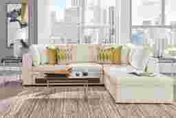 Relax in your living room with the contemporary style of the Sheridan Square sectional from Cindy Crawford Home. This stunning sectional is upholstered in cozy off white chenille fabric that helps you relax without sacrificing on durability. The beautiful appearance of this sectional is highlighted by tufting on the seat cushions and loose back cushions that add a casualness to the piece. The perfect finishing touch to this sectional is a pop-up trundle sleeper that conveniently tucks away under the piece when not in use by overnight guests. Upholstery: 100% Polyester. Accent pillows not included.