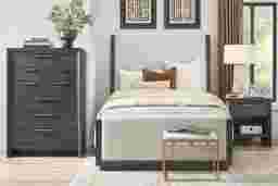 Cindy Crawford Home Small Space Fairfax Gray 5 Pc King Upholstered Bedroom