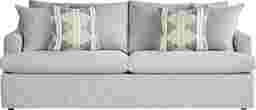 Breezy style and cozy tranquility harmonize perfectly with the uncomplicated design of the Soho Loft sofa. Delivering a timeless look, the sofa's gray pinstriped slipcover is easy to remove and clean. A pair of sleek padded track arms frame the sensational silhouette with the ultimate modern charm. Accent pillows are included. Upholstery: 53% Cotton, 47% Polyester.
