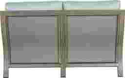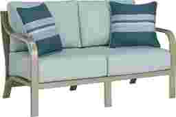 Cozy, comfortable, and chic, the St. Lucia loveseat is the perfect place to have a chat with a friend, or even to relax in the sunshine with a good book. Made with a fully welded rust resistant aluminum frame in a hand painted champagne finish, each padded seat is incredibly comfortable. Beautiful seafoam Sunbrella cushions resist fading, and are mold and mildew resistant, creating long lasting and comfortable seating for many seasons. Two included toss pillows in a colorful striped pattern add a casual touch. 100% Sunbrella fabric. To clean Sunbrella fabric cushions remove dirt and spray on cleaning solution (water and mild soap), then use a soft bristle brush or sponge. Allow cleaning solution to soak into fabric and rinse thoroughly until soap residue is removed. Air dry. Do not dry clean.