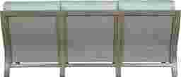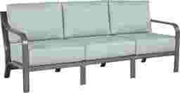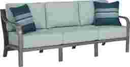 The St. Lucia sofa combines contemporary lines with a chic feel to create the ideal place to enjoy temperate weather. Made with a fully welded rust resistant aluminum frame in a hand painted champagne finish, three padded seats are incredibly comfortable. The lovely seafoam Sunbrella cushions resist fading, and are mold and mildew resistant, creating long lasting and comfortable outdoor seating that can be enjoyed for many seasons. Each included toss pillow adds a colorful splash of color in a fun striped print. 100% Sunbrella fabric. To clean Sunbrella fabric cushions remove dirt and spray on cleaning solution (water and mild soap), then use a soft bristle brush or sponge. Allow cleaning solution to soak into fabric and rinse thoroughly until soap residue is removed. Air dry. Do not dry clean.