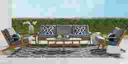 Cindy Crawford Home Sydney Teak 4 Pc Outdoor Seating Set With Denim Cushions