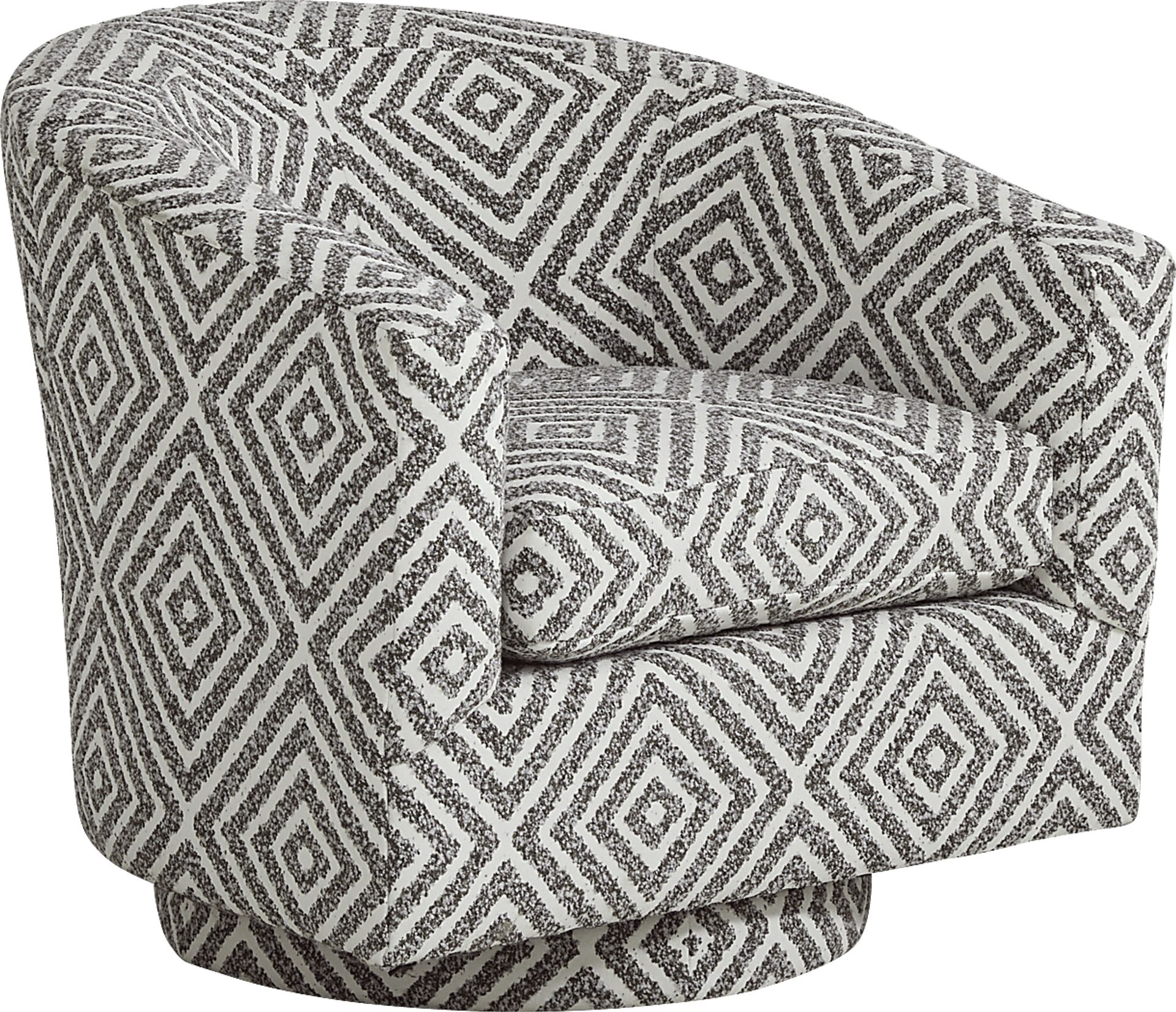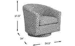 The chic style and contemporary flair of The Swerve swivel chair from the Cindy Crawford Home collection redefines elegance by combining the opulence of Madison Avenue with the cosmopolitan appeal of SoHo living. Upholstered in textured white boucle with a granite pattern, The Swerve swivel delivers swift spins without sparing style. Throw pillows compliment the neat design elements that make this modern chair a sophisticated pick for your home. Upholstery: 100% Polyester