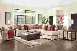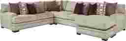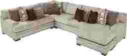 Redefine your living room with the luxurious transitional style offered by the Tribeca Loft sectional from Cindy Crawford Home. This designer-friendly piece boasts comfortable feather blend seat cushions with gel memory foam toppers. Upholstered in beige plush woven chenille fabric, this sectional is embellished with bold nailhead accents and padded track arms for an elegant touch. Reversible back and seat cushions ensure this piece lasts for years to come. An array of designer feather blend accent pillows in complementing colors completes the look. Upholstery: 100% Polyester