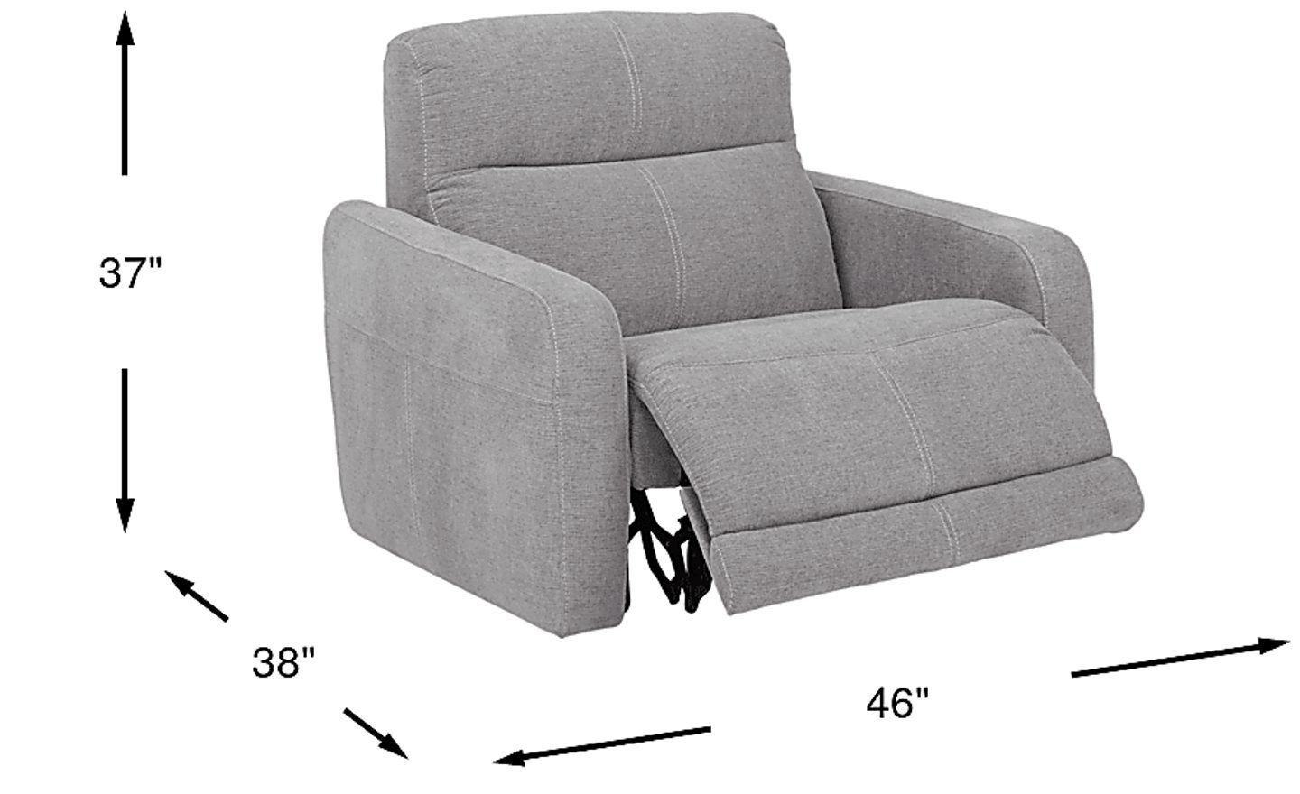 Offering a sophisticated contemporary look, the West Highlands power recliner is a staple comfort item for your living room. Upholstered with textured fabric in a chic gray, this piece combines style with comfort, featuring a channel back cushion and padded chaise footrest. The power reclining feature allows you to raise and lower the footrest at the touch of a button for individualized comfort. Curved track arms add sleek detailing. 21" extension when footrest is fully reclined. Allow 3" for wall spacing. 100% Polyester
